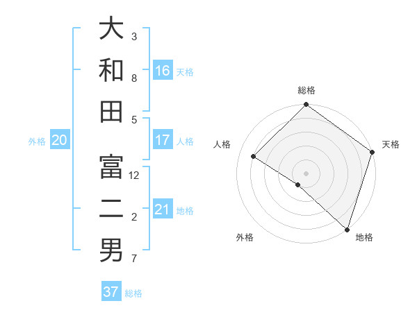 大和田 富二男さんを姓名の画数から五運を鑑定