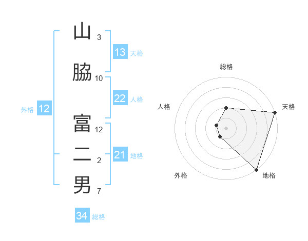 山脇 富二男さんを姓名の画数から五運を鑑定