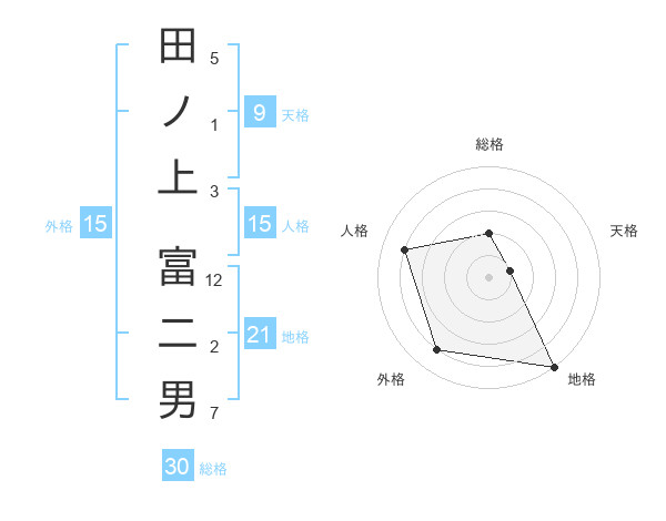 田ノ上 富二男さんを姓名の画数から五運を鑑定