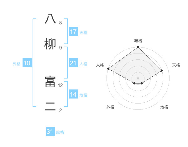 八柳 富二さんの天格は17画の4点!