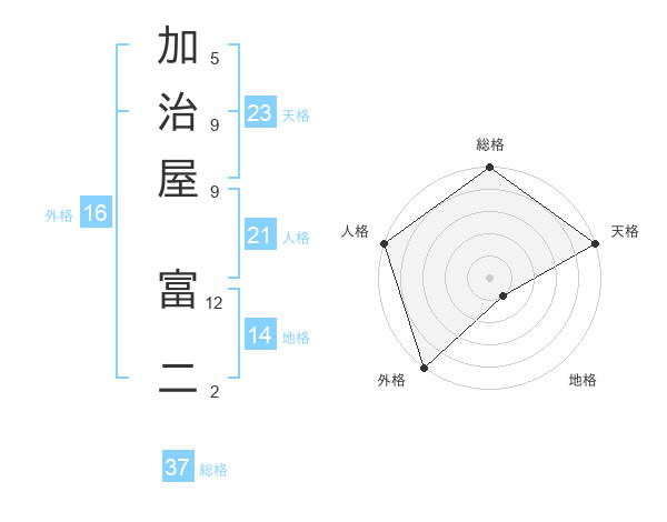 加治屋 富二さんを姓名の画数から五運を鑑定