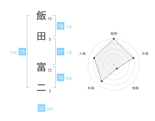 飯田 富二さんの総格は32画の5点