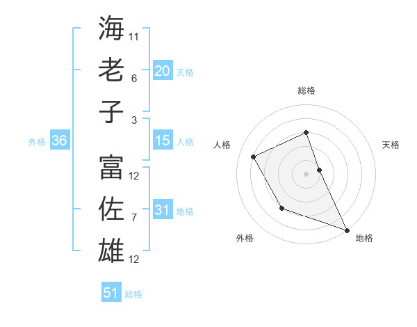 海老子 富佐雄さんの総格は51画の3点!