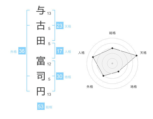与古田 富司円さんの天格は23画の5点!