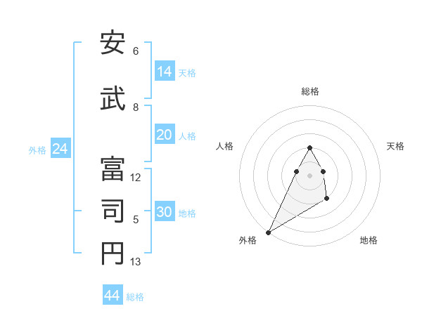 安武 富司円さんの総格は44画の2点!