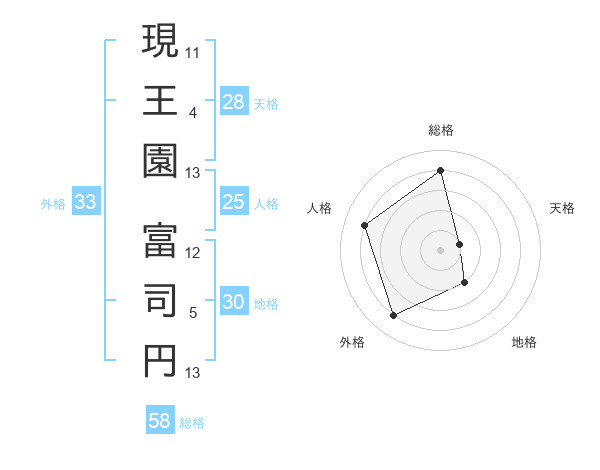 現王園 富司円さんを姓名の画数から五運を鑑定