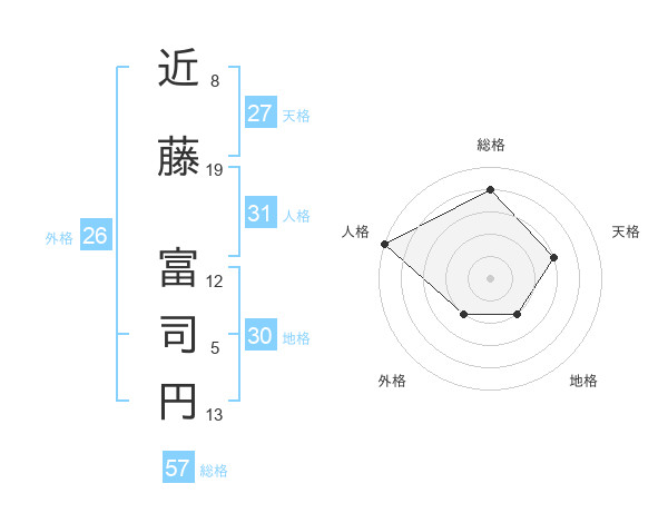 近藤 富司円さんを姓名の画数から五運を鑑定