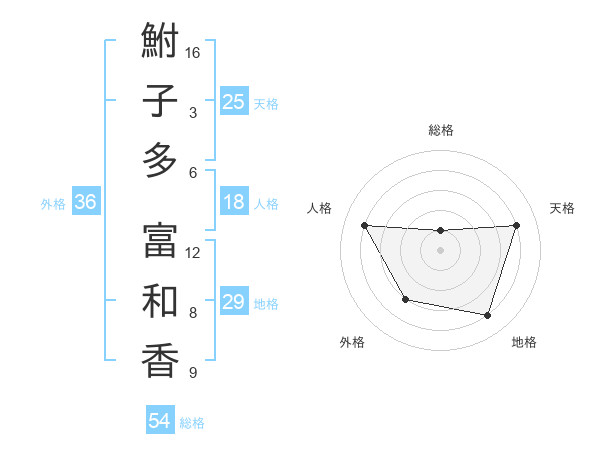 鮒子多 富和香さんを姓名の画数から五運を鑑定