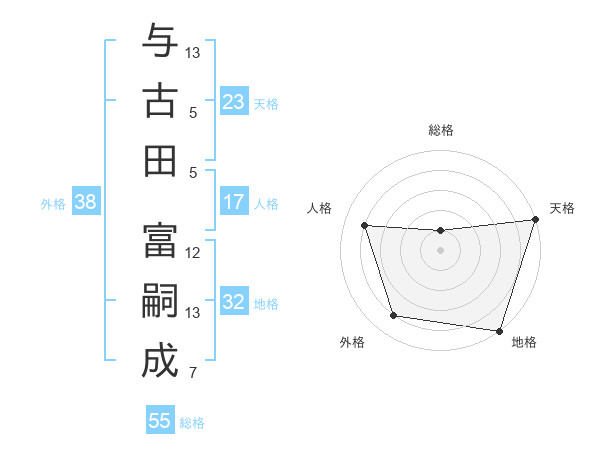 与古田 富嗣成さんを姓名の画数から五運を鑑定