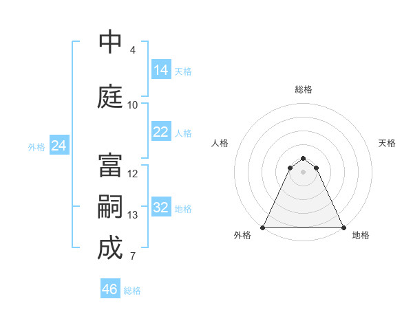 中庭 富嗣成さんの総格は46画の1点!