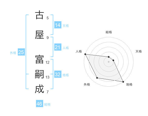 古屋 富嗣成さんの地格は32画の5点!