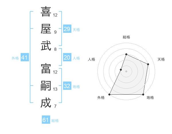 喜屋武 富嗣成さんの外格は41画の5点!