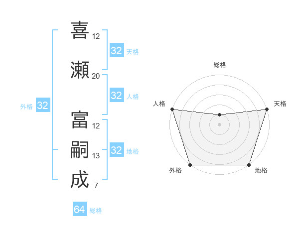 喜瀬 富嗣成さんの人格は32画の5点!