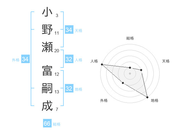 小野瀬 富嗣成さんを姓名の画数から五運を鑑定
