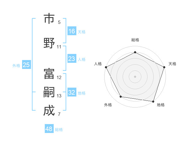 市野 富嗣成さんを姓名の画数から五運を鑑定