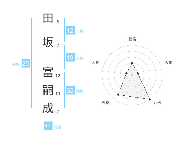 田坂 富嗣成さんの天格は12画の1点!