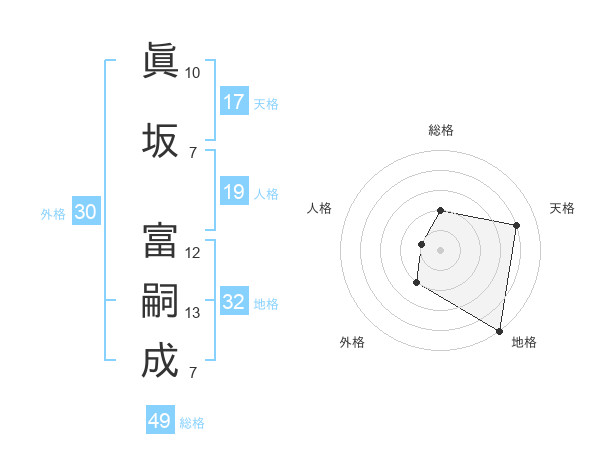 眞坂 富嗣成さんを姓名の画数から五運を鑑定