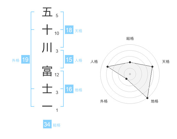 五十川 富士一さんを姓名の画数から五運を鑑定