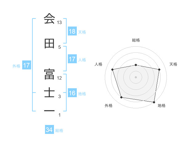 会田 富士一さんの総格は34画の2点!