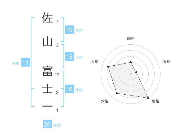 佐山 富士一さんを姓名の画数から五運を鑑定