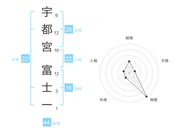 宇都宮 富士一さんを姓名の画数から五運を鑑定