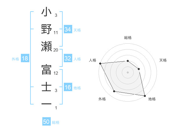 小野瀬 富士一さんの総格は50画の2点!