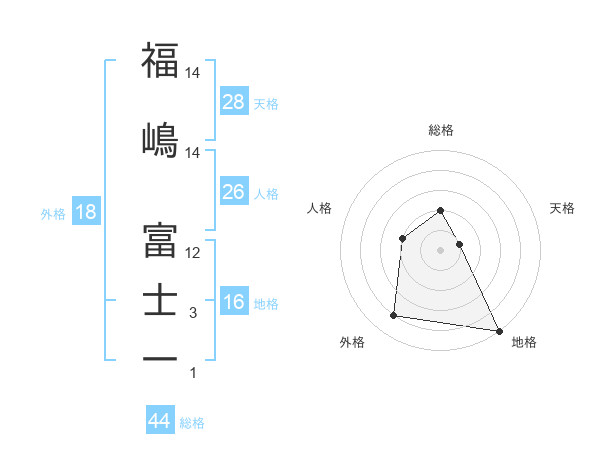 福嶋 富士一さんを姓名の画数から五運を鑑定
