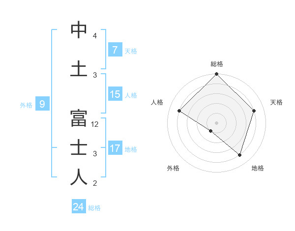 中土 富士人さんの総格は24画の5点!