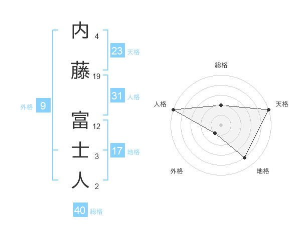 内藤 富士人さんの天格は23画の5点!