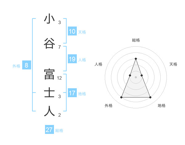 小谷 富士人さんの総格は27画の3点!
