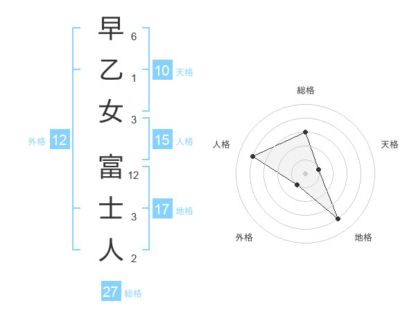 早乙女 富士人さんの総格は27画の3点!