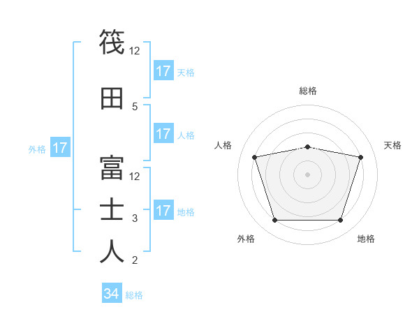 筏田 富士人さんの天格は17画の4点!