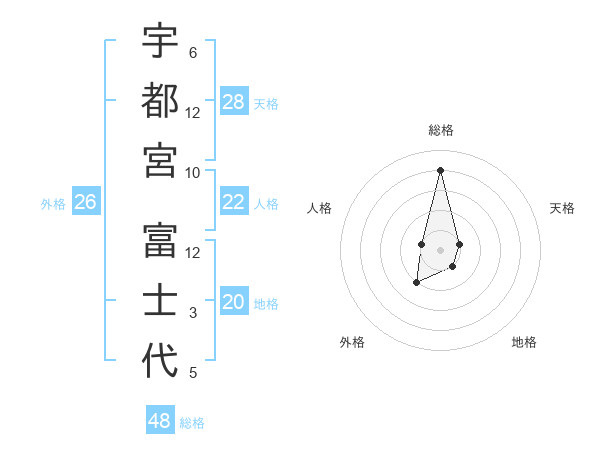 宇都宮 富士代さんを姓名の画数から五運を鑑定