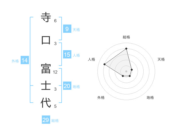 寺口 富士代さんの総格は29画の4点!