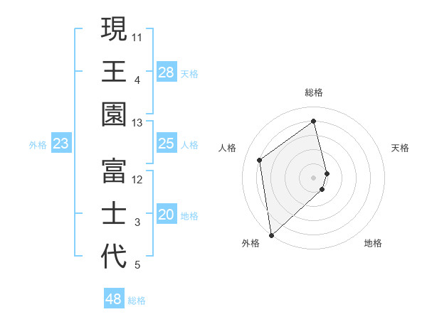 現王園 富士代さんを姓名の画数から五運を鑑定