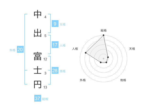 中出 富士円さんの総格は37画の5点!