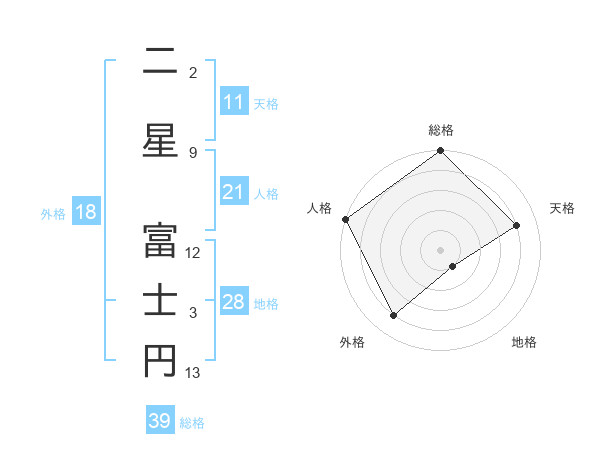 二星 富士円さんの総格は39画の5点!