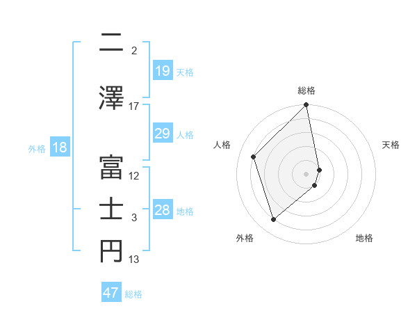 二澤 富士円さんを姓名の画数から五運を鑑定