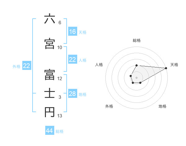六宮 富士円さんを姓名の画数から五運を鑑定
