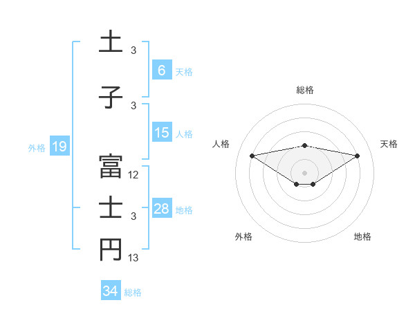 土子 富士円さんの総格は34画の2点!