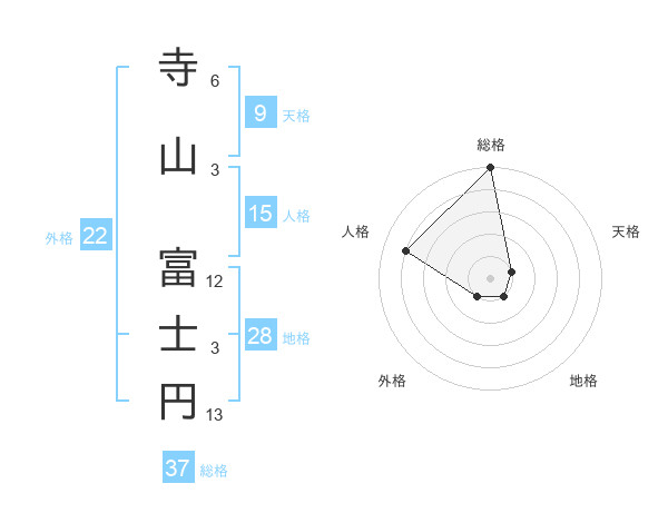 寺山 富士円さんの総格は37画の5点!