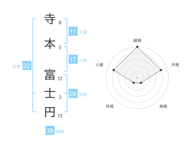 寺本 富士円さんの総格は39画の5点!