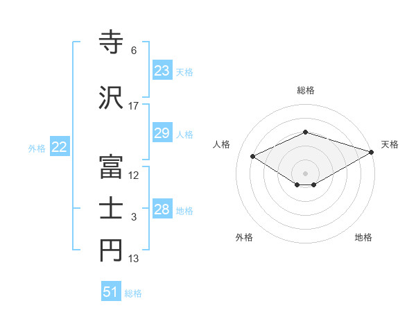 寺沢 富士円さんを姓名の画数から五運を鑑定