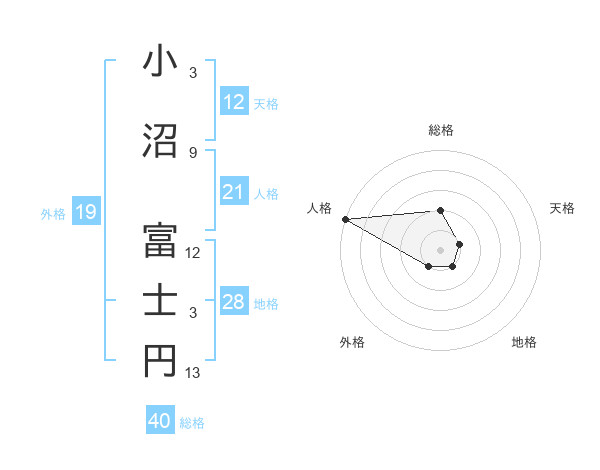 小沼 富士円さんの地格は28画の1点!