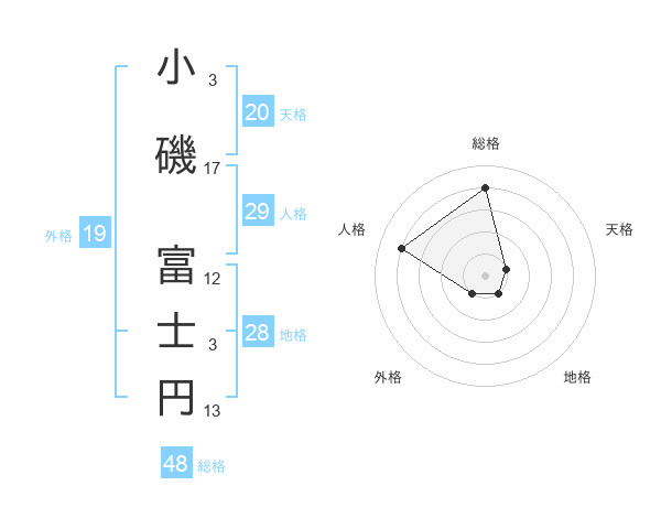 小磯 富士円さんを姓名の画数から五運を鑑定