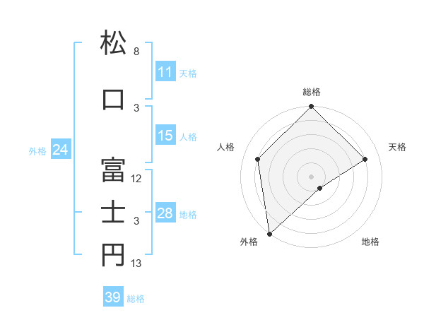 松口 富士円さんの総格は39画の5点!