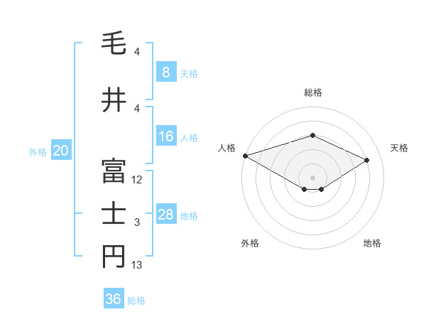 毛井 富士円さんを姓名の画数から五運を鑑定