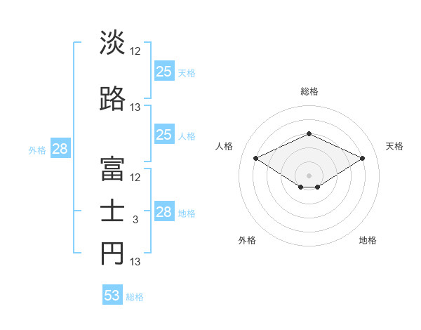 淡路 富士円さんを姓名の画数から五運を鑑定