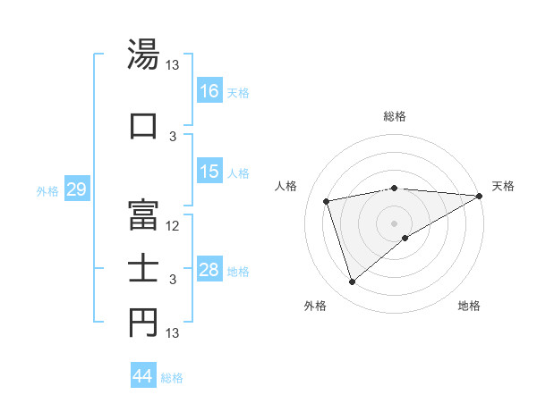 湯口 富士円さんを姓名の画数から五運を鑑定