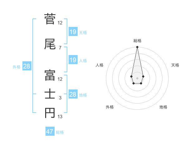 菅尾 富士円さんの総格は47画の5点!